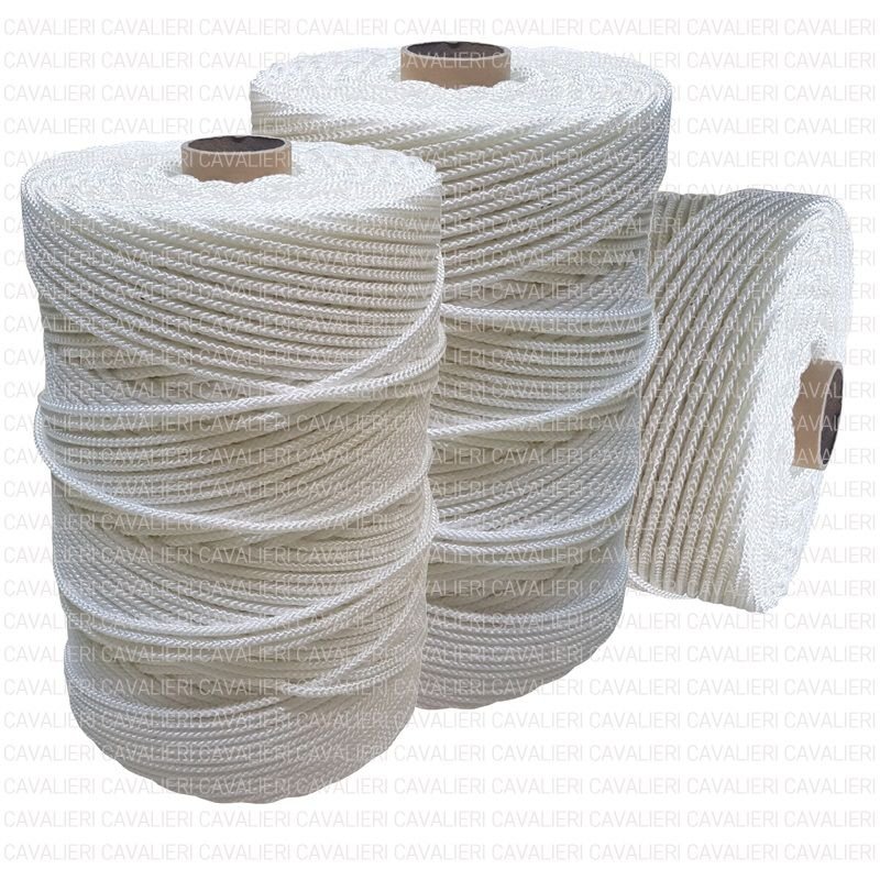 Braided rope with polypropylene (PP) external cover and parallel polypropylene internal core.