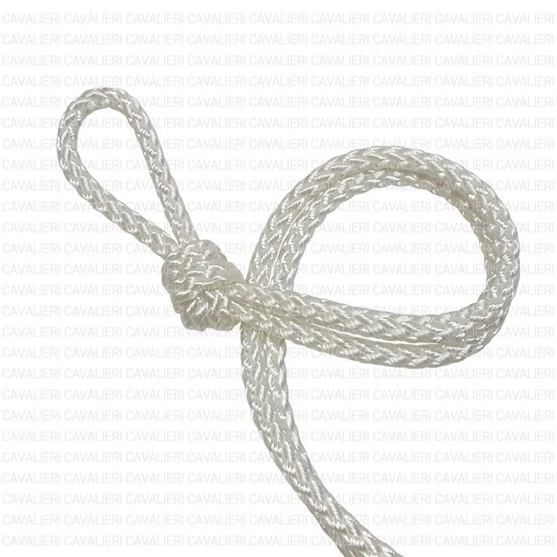 Braided rope with bright medium tenacity polyester external cover and parallel medium tenacity internal core.